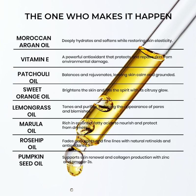 | Key Ingredient | Rosehip Oil, Moroccan Argan Oil, Marula Oil, Vitamin E, Pumpkin Seed Oil, Lemongrass Etc.. |