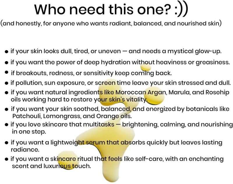 Mystical Radiance Serum is a luxurious blend of exotic oils that nourish and rejuvenate the skin. Ideal for dry and mature skin, it works overnight to boost glow, repair barrier damage, and awaken fresh luminosity by morning.